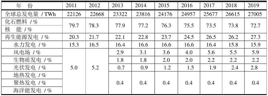 2010~2019年全球電力生產(chǎn)結(jié)構(gòu)(REN21統(tǒng)計)