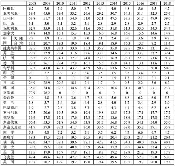 本數據是世界核能協會(World Nuclear Association,WNA)于 2019年8月份提供的數據。德國和日本核能發電在世界各國電力中的份額處于逐年下降,而中國大陸卻上升。