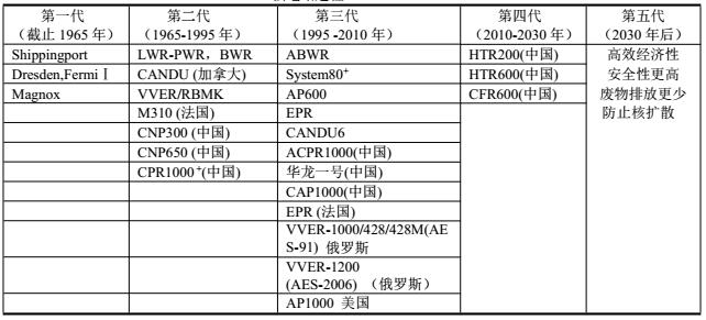 核能發電發展到2030年,進入第五代操作系統將會提供更安全、更可靠、更經濟、更持續發展,見表可以看出,中國核電站已經自主研究開發的,并且已經進入第四代核電站,操作更加經濟安全,排放廢物更加少。