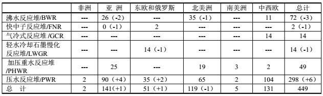 2018年底全球運行的反應堆有449座,壓水反應堆(PWR)最多,占總量的298/449=66%;其次為沸水反應堆(BWR)。