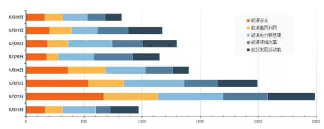 根據中電傳媒能源情報研究中心輿情監測室監測,能源安全、能源惠民利民、能源電力新基建、能源領域改革、創新發展新動能等輿論熱度較高。能源安全的輿情監測結果中,包含了能源供應、石油天然氣儲備等相關報道;能源惠民利民的輿情監測結果中,包含了降低用能成本、降低工商業電價5%政策延長到今年年底、農村電網建設、清潔取暖等相關報道;能源電力新基建的輿情監測結果中,包含了能源電力新基建、充電樁、能源互聯網等相關報道;能源領域改革的輿情監測結果中,包含了電力體制改革、油氣體制改革、國資國企改革等相關報道;創新發展新動能的輿情監測結果中,包括了氫能、儲能、能源技術裝備創新以及智慧能源等相關報道。