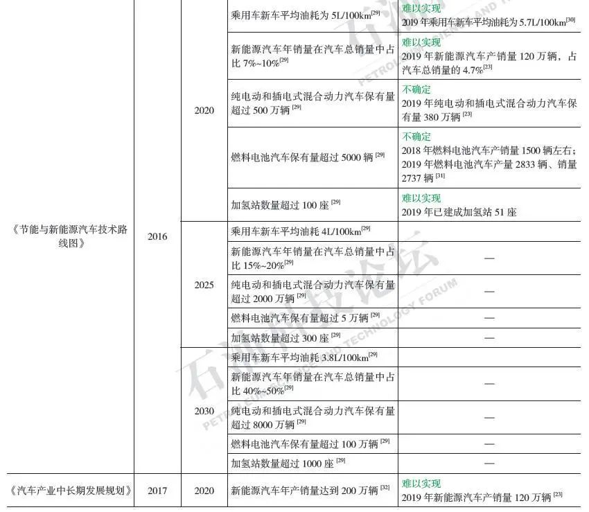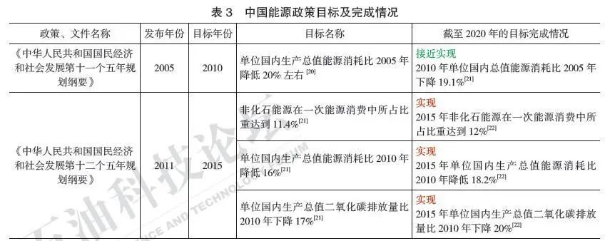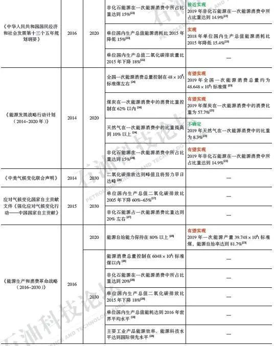截至2020年,從中國主要能源政策目標的完成情況可以看出:(1)中國作為世界能源生產、消費第一大國,在能源消費總量控制、非化石能源消費比例以及單位國內生產總值能耗和碳排放方面的目標完成情況良好;(2)交通能效及新能源汽車產業(yè)指標完成情況不理想。