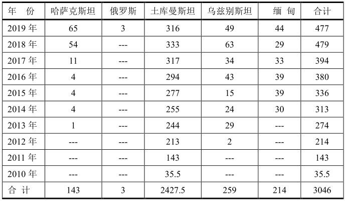 世界上天然氣儲量最多的國家是俄羅斯,土庫曼斯坦居世界第四位。中國管輸天然氣進口依靠資源豐富的俄羅斯和中亞國家,最早的最重要的出口國是土庫曼斯坦,于2010年開始出口,到2019年總量已經達到2427.5億立方米;其次是烏茲別斯坦、緬甸和哈薩克斯坦。俄羅斯從2019年也開始出口到中國,而且將會逐年增加,成為管輸出口到中國最多的國家。