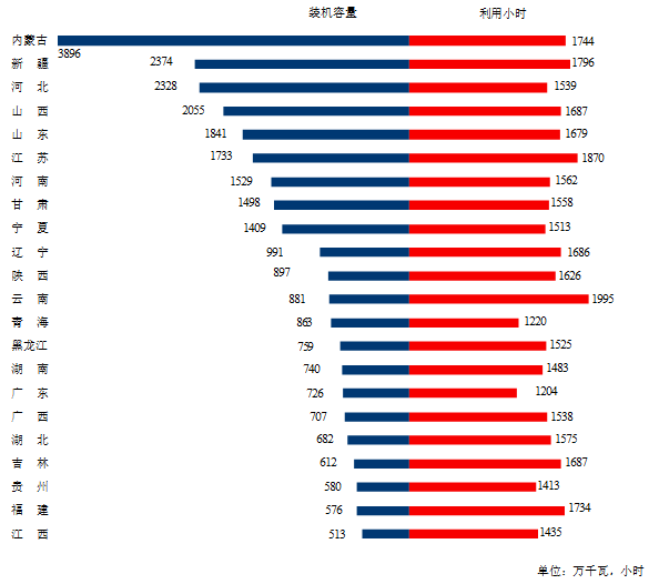 分類型看,1-9月份,全國水電設備平均利用小時為2794小時,比上年同期降低100小時。在水電裝機容量排前10的省份中,除浙江外,其他省份水電設備平均利用小時均同比降低,其中,青海、廣東和廣西降低較多,分別降低584、281和240小時;全國火電設備平均利用小時為3339小時,比上年同期增加280小時,其中,燃煤發電設備平均利用小時為3450小時,比上年同期增加318小時,燃氣發電設備平均利用小時為2074小時,比上年同期增加140小時。分省份看,全國有14個省份的火電設備利用小時超過全國平均水平,其中江西、內蒙古、福建和新疆超過3700小時,分別為3993、3778、3765和3723小時,甘肅、海南、浙江、廣西、安徽和廣東超過3500小時,而西藏僅為218小時。與上年同期相比,除吉林、內蒙古、黑龍江、河北、西藏和遼寧外其他省份火電利用小時均同比增加,其中重慶、浙江、廣東、四川和青海增加超過700小時,分別增加801、755、727、727和723小時;全國核電設備平均利用小時5842小時,比上年同期增加321小時;全國并網風電設備平均利用小時1640小時,比上年同期增加91小時;全國太陽能發電設備平均利用小時1006小時,比上年同期降低4小時。