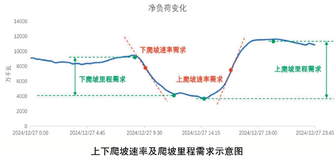 爬坡速率和里程是表征瞬時和持續(xù)爬坡需求及能力的核心指標(biāo)。爬坡是指為應(yīng)對可再生能源發(fā)電波動等不確定因素帶來的系統(tǒng)凈負(fù)荷短時大幅變化,具備較強負(fù)荷調(diào)節(jié)速率的并網(wǎng)主體根據(jù)調(diào)度指令調(diào)整出力,以維持系統(tǒng)功率平衡所提供的服務(wù),可分為上、下爬坡兩類。上爬坡需求難以滿足時可能引發(fā)切負(fù)荷或頻率越限等問題,下爬坡需求難以滿足時可能導(dǎo)致棄風(fēng)棄光。本文針對系統(tǒng)瞬時和持續(xù)爬坡問題分別從爬坡速率和爬坡里程兩方面開展分析,其中爬坡速率需求是指凈負(fù)荷每分鐘變化的最大值,爬坡里程需求則是指凈負(fù)荷日內(nèi)最大連續(xù)上升/下降值。