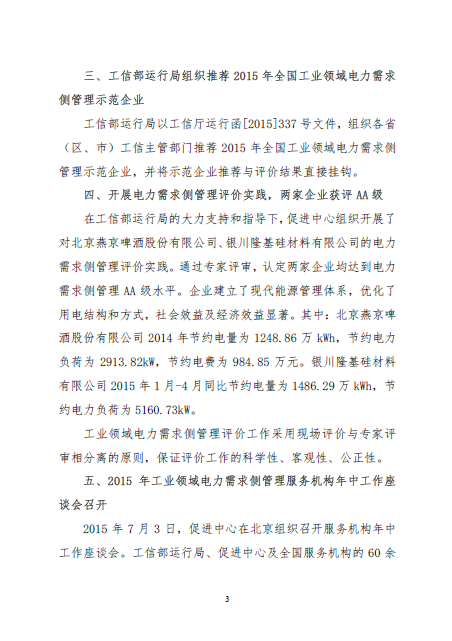 工業領域電力需求側管理工作簡報(2015年第1期)