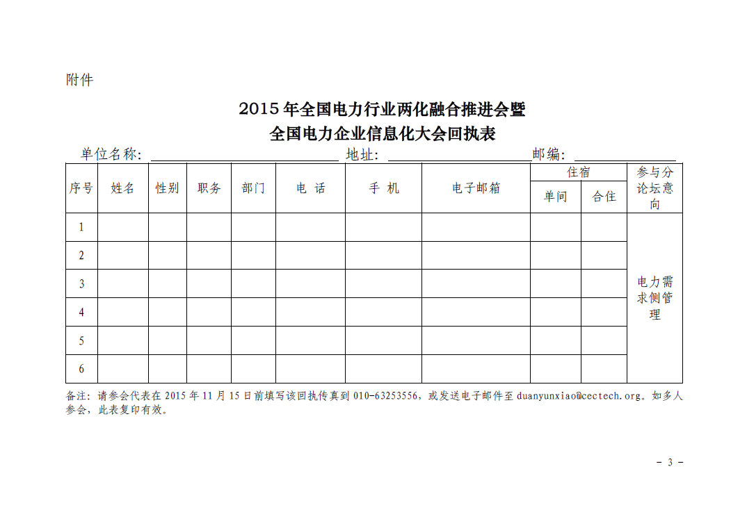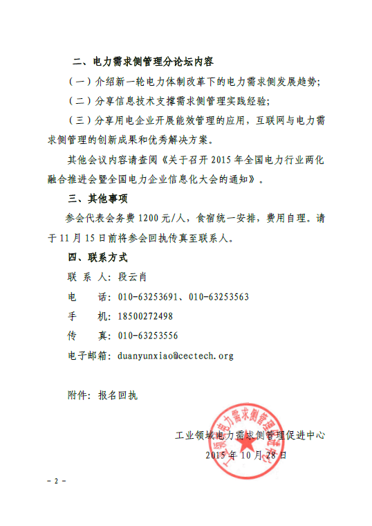 2.關于組織參加2015年全國電力企業信息化大會電力需求側管理分論壇的通知(工電促[2015]10號)